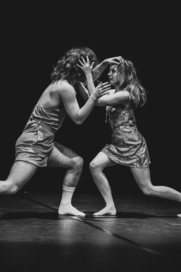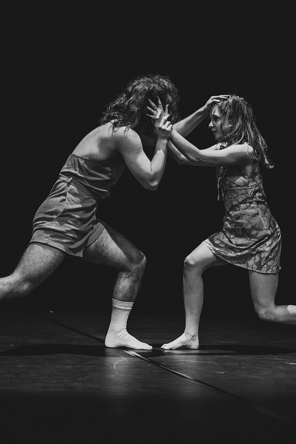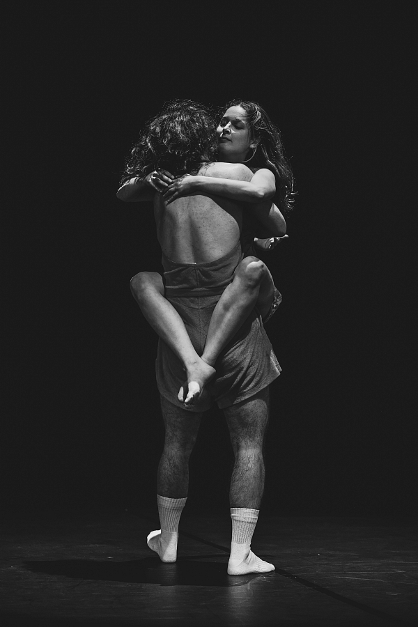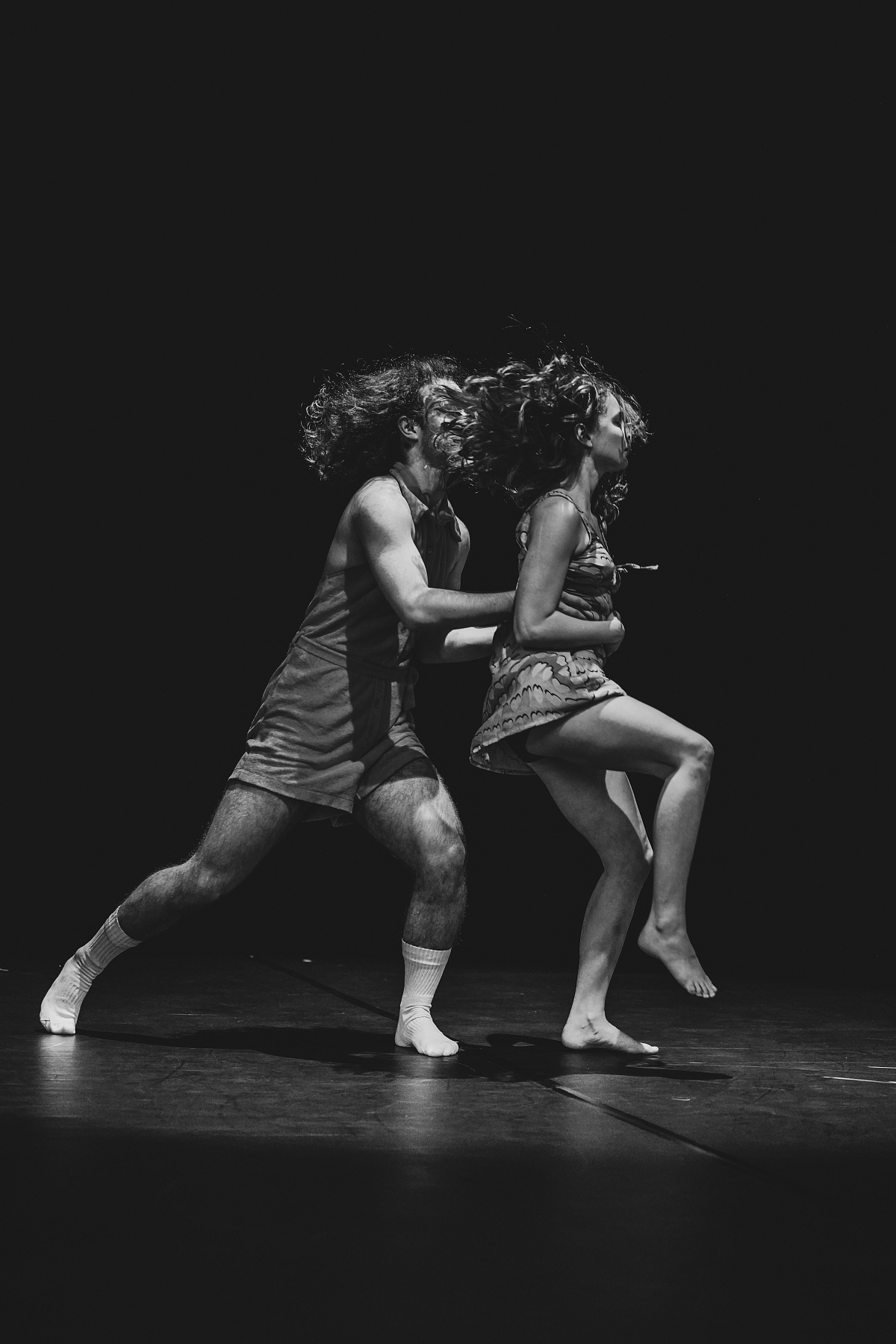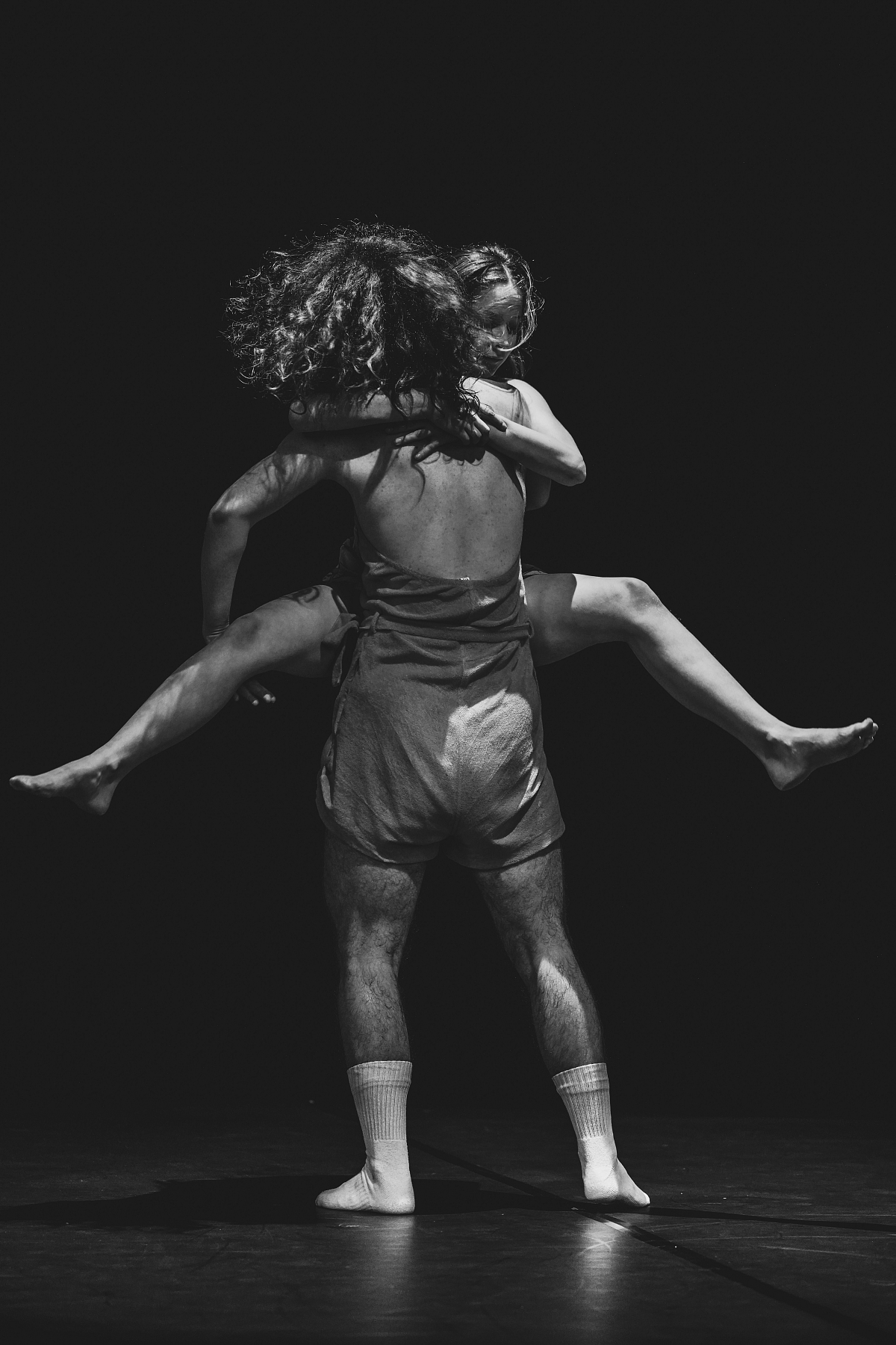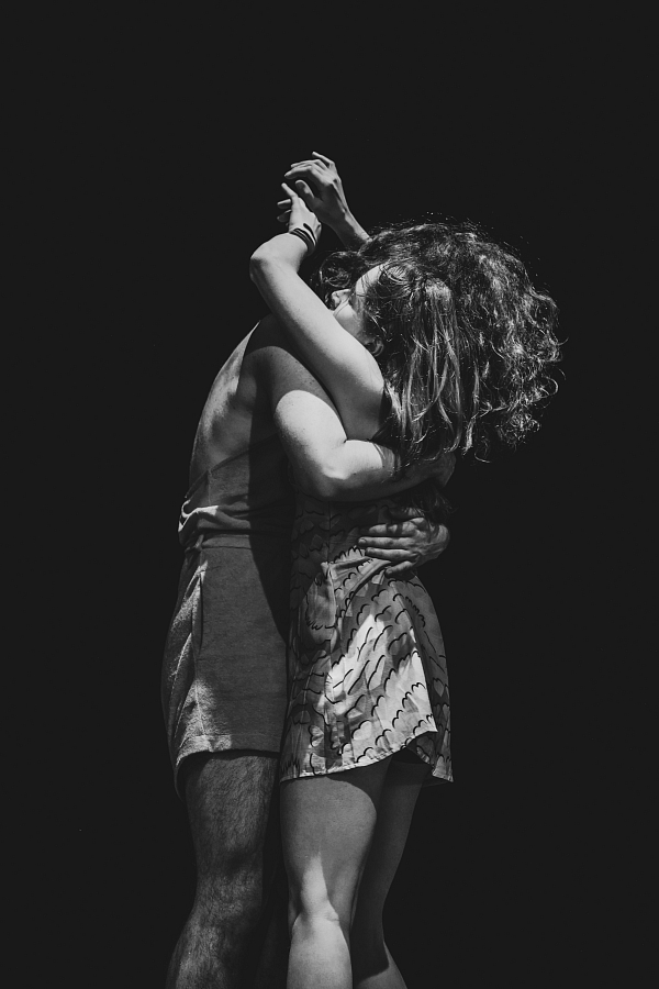 „Int(3x)nsiv", die Choreographie von Wiebke Färber, die sie mit den AbsolventInnen des TanzIntensiv-Programms der Plattform Studios erarbeitet hat, war sehr kraftvoll, laut, wild, bunt, fabelhaft und mitreissend. Dass ich die Farben aus dieser Foto-Sequenz rausgenommen habe (nur für mich), liegt daran, dass die Essenz dieser Szene für mich damit noch sichtbarer wird; die Emotionen, die Mariella und Aaron in ihrem Tanz zeigen, die Authenitizät ihrer Darstellungen von Nähe, Tiefe, von der Dynamik, die zwischen zwei Menschen entstehen kann, wie sie sich innerlich berühren, tief in ihrem Körper; das innere Bewegtsein, das dann im Aussen sichtbar wird.